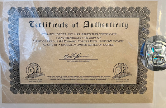 Justice League #1 (2016) Dynamic Forces B&W Variant Exclusive w/COA DC Comics