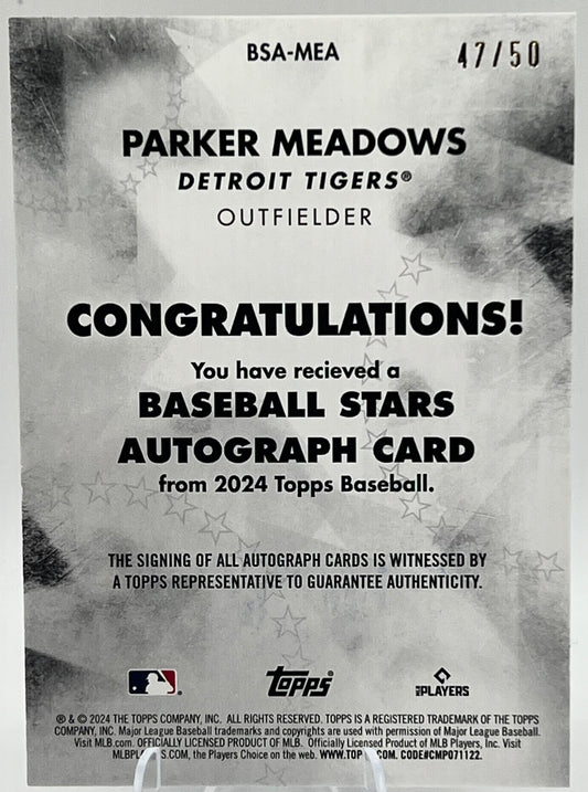 2024 Topps Series 2 Baseball Stars Parker Meadows Auto Gold #47/50