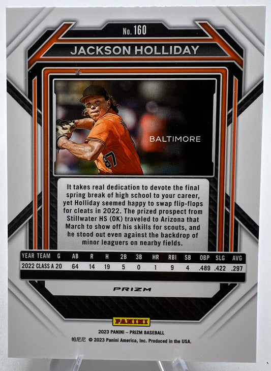 2023 Panini Prizm Jackson Holliday Rookie Baseball Card Silver Prizm #160