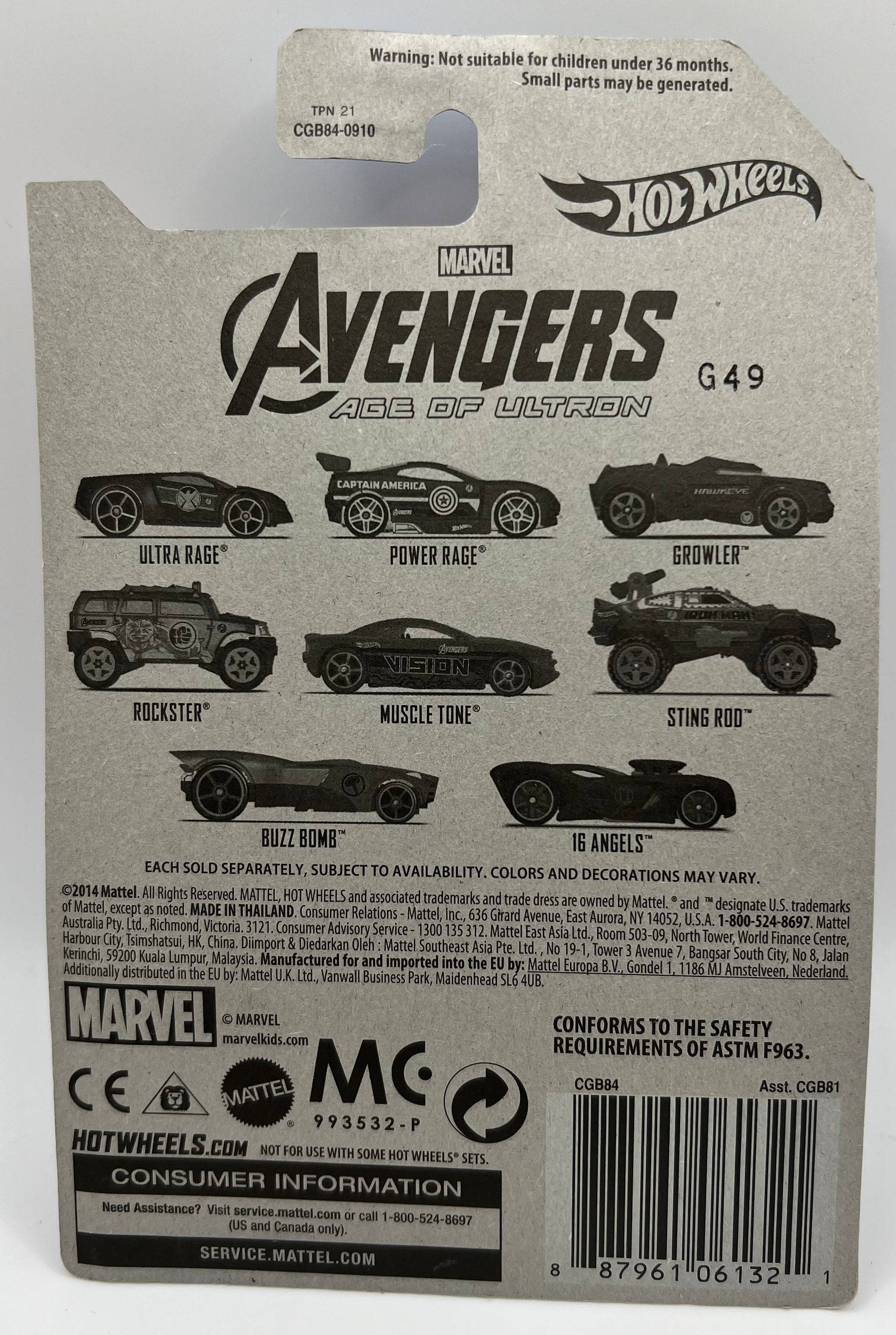 Hot Wheels AVENGERS Age of Ultron HAWKEYE GROWLER 3/8 Series MCU 2015 NEW