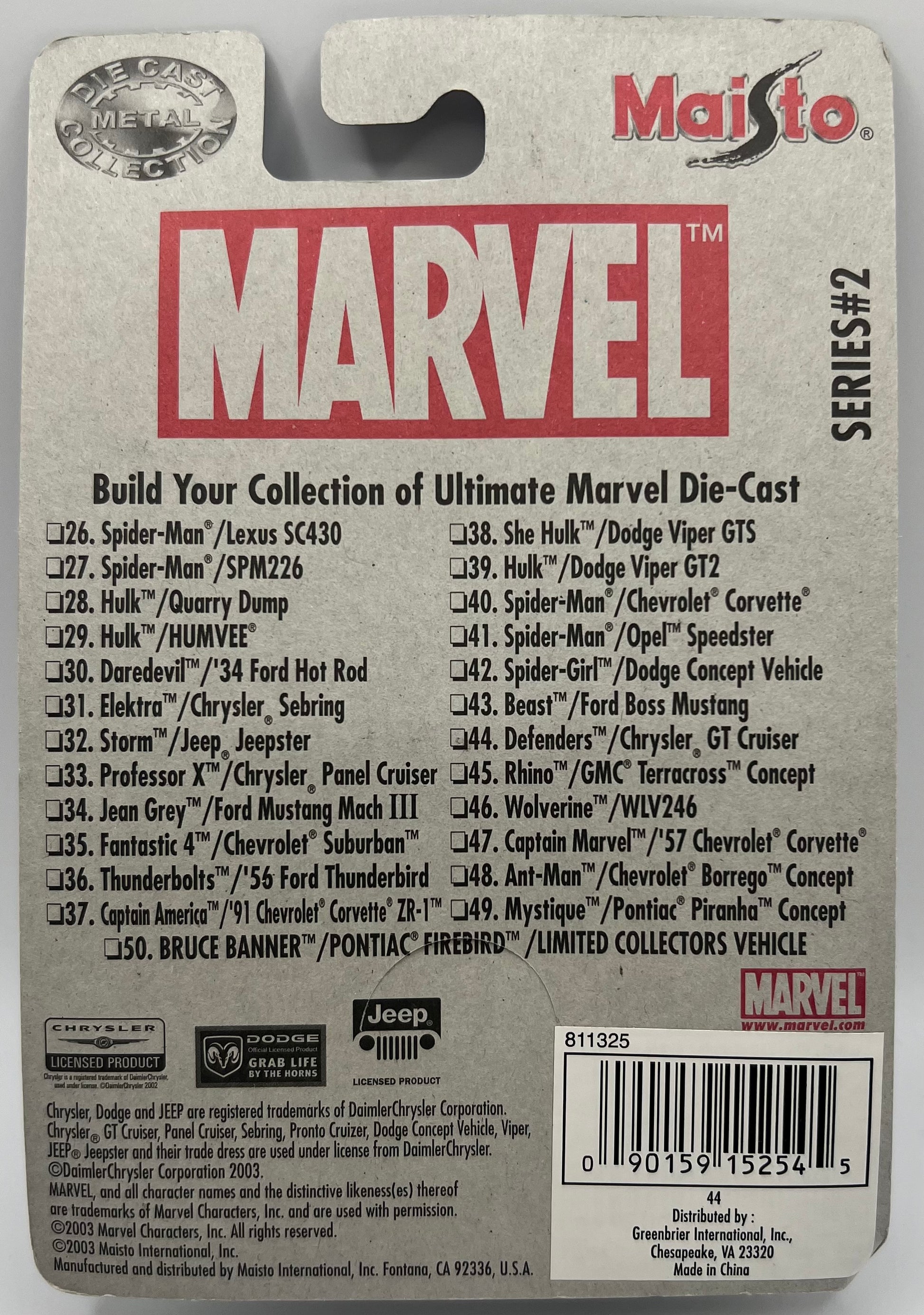 Maisto Marvel Die-Cast Collection Professor X Chrysler Panel Cruiser #33 Series 2