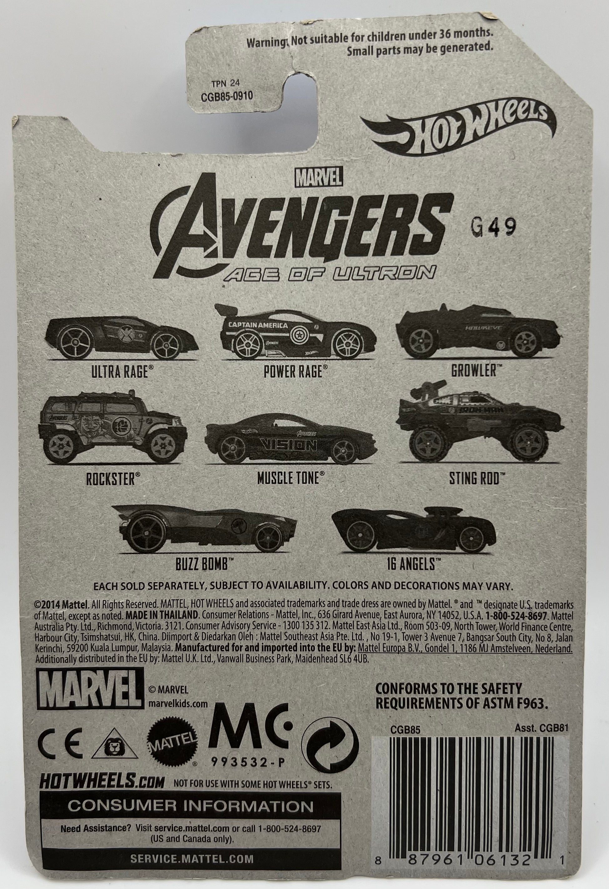 Marvel The Avengers Age of Ultron Hulk Rockster 2014 Hot Wheels Toy Car #4/8